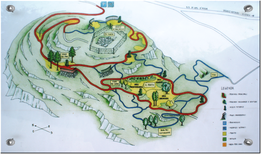 Il bosco della città di Trento, cui la Provincia autonoma di Trento e proprietaria si trova a ponente della Marzola, fra il Dosso di San Rocco e le Novaline sulla S.S. 349 della Val d'Assa e la S.S. 12 dell'Abetone e del Brennero denominata anche complesso provinciale Casteller. È in consegna al servizio Forestale e fauna, dove svolge attività d'istituto. Il bosco e diviso in due parti che in totale misurano 102 ettari. La prima parte ha una superficie di 34 ettari adibito a parco botanico e centro di recupero avifauna selvatica, la seconda parte che ha una superficie di 68 ettari è divisa in altri due settori, 41 ettari per attività vivaistica forestale, 27 ettari per attività alla gestione venatoria. Il parco botanico è un'area di circa 17 ettari, dove lungo i sentieri troviamo punti panoramici, fontane d'acqua potabile, e panchine per rilassarsi, si possono osservare le specie botaniche del Trentino e anche provenienti da altri paesi ma che sono compatibili con il clima del Trentino. Nel bosco ci si può solo accedere o a piedi o con il rampichino lungo una strada sterrata, (prima della stanga forestale si trova un comodo parcheggio) finita la salita, si raggiunge l'ingresso al bosco, dove da si diramano i vari sentieri che formano un percorso ad anello che si divide fra principali e secondari, lungo i sentieri principali troviamo le panchine, punti panoramici e fontane d'acqua potabile.