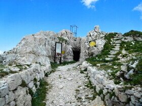Itinerario: Escursione ad anello nel Gruppo del Pasubio passando nei luoghi della guerra del 1915-1918. Dal parcheggio del Sasson si prosegue sul Sat 101 in direzione della Malga Zocchi. Giunti alla Malga Zocchi si prosegue verso Bocchetta dei Foxi sentiero Sat 122. Dalla Bocchetta dei Foxi si continua sul sentiero Sat 102, Bocchetta delle Corde. Da qui si prosegue sul sentiero Sat E5-105, per poi incrociare dopo circa 15 minuti una deviazione sentiero Sat 134 Malga Cosmagnon 0:30-Ver. Ovest cima Palon 1h15. Arrivati alla Malga Cosmagnon si prosegue sul sat 134, si cominciano a vedere postazioni e trincee della guerra 1915-1918. Si arriva al bivio Sat 135 si continua verso Cogolo Alto 0:20 - Cima Palon 0:30 per poi proseguire sul sentiero delle creste. Arrivati al Cogolo Alto si continua sul Sat 105 in circa 0:15 si giunge alla Cima Palon.