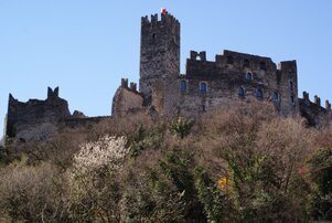Ferrata: Il primo tratto si trova sul lato sinistro del torrente. Si sale su gradini artificiali, superando una prima sporgenza, e si prosegue in orizzontale fino a una uscita di sicurezza, da cui ci si sposta sul lato destro del torrente. Si continua lungo il canyon e, per concludere questo primo tratto, si scende sul letto del torrente. Dopo aver oltrepassato una roccia, il canyon si apre e ci si trova di fronte a una cascata e al primo ponte tibetano. Sulla sinistra si prosegue affrontando il ponte, mentre sulla destra si può evitarlo. Dopo il ponte, il sentiero continua salendo su roccia, con gradini artificiali in ferro e cordino di sicurezza.Terminato questo tratto, si prosegue tra le rocce e si attraversa una galleria naturale. Si arriva al secondo ponte tibetano: il sentiero a sinistra lo attraversa, mentre quello a destra lo evita. Si continua salendo lungo gradini in legno fino a un bivio, dove si trova un ponte in legno. Attraversandolo e proseguendo a sinistra, si va verso il Castello di Drena, evitando l’ultimo tratto del canyon. Proseguendo invece a destra, si affronta l’ultimo tratto del canyon, salendo su rocce con gradini in ferro. Si arriva all’imbocco finale del canyon, servito da staffe e passaggi suggestivi, che valorizzano la particolarità del luogo. Alla fine del canyon si affronta l’ultimo tratto di roccia, servito da cordino, fino all’uscita della ferrata, situata alle spalle del Castello di Drena. Da qui, in circa 5 minuti, si raggiunge il castello, che è visitabile. Poco distante si trova anche un bar per una sosta.