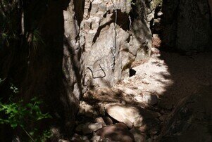 Descrizione: Da Trento si procede verso San Michele all'Adige. Dopo circa 4–5 km si arriva alla località Codino. Sulla sinistra si trova un ampio parcheggio presso il ristorante Cadino, dove si può comodamente lasciare l’auto. Sul lato destro della strada statale si vede una chiesetta: lì comincia il sentiero SAT 490, che porta verso la ferrata. Il sentiero è boschivo e risale con pendenza media. A circa metà percorso si incrocia il sentiero di rientro. Ci vogliono circa 15–20 minuti per raggiungere l’inizio della ferrata. Si arriva a una panchina e, dopo 5 metri, inizia la ferrata con un breve traverso in discesa che porta nel letto del torrente. Il primo tratto è verticale, poi si prosegue lungo una cengia. Continuando su un breve traverso, si arriva al primo tratto della ferrata denominato Salto dei Caprioi (340 metri s.l.m.). Da qui si sale in verticale per circa 10 metri, si raggiunge un’altra cengia e si prosegue verso destra con un breve traverso. Dopo un altro tratto verticale, si arriva su una cengia panoramica denominata Belvedere (355 metri s.l.m.), da cui si può ammirare un bel panorama sulla Valle dell’Adige e il Gruppo del Brenta. Si continua per circa 10 metri in leggera salita tra la boscaglia, su un sentiero servito da un cordino, per poi scendere lungo la roccia per circa 5 metri e tornare nel letto del torrente. La ferrata riprende salendo per 3–4 metri, poi si prosegue lungo un traverso verso sinistra per altri 10 metri circa, e infine si affronta un tratto verticale di circa 5 metri. All’uscita di questo tratto si prosegue su sentiero boschivo per circa 5 minuti. Si arriva al punto denominato Passaggio dei Gabbiani (435 metri s.l.m.): un breve tratto in discesa, poi un traverso esposto. Si supera uno spigolo e si continua su un breve tratto orizzontale, seguito da uno verticale. Si alternano brevi tratti in verticale e in orizzontale fino all’incrocio con il sentiero per il rientro di emergenza. Si prosegue su terreno boschivo, passando tra rocce e grossi massi, fino alla Grotta del Basalisc (495 metri s.l.m.). Si continua tra le rocce, arrivando a uno slargo nel letto del torrente, decorato da vari ometti di pietra. La ferrata riprende con un tratto verticale, un traverso, si oltrepassa uno spigolo e si affronta un altro breve tratto verticale. Si arriva su una cengia dove si trova il libro delle firme. Dopo un traverso, si prosegue in verticale e si conclude con un ultimo tratto in traverso, fino a raggiungere un piano dove si trova la Grotta della Mariotta (520 metri s.l.m.). Da qui si affronta l’ultima parte della ferrata: circa 50 metri in verticale, seguiti dagli ultimi 3–4 metri in orizzontale. All’uscita ci si ritrova all’inizio della boscaglia.Rientro: Il sentiero di rientro è boschivo. La prima parte, di circa 10 minuti, è in modesta salita fino a raggiungere Val dei Teari (625 metri s.l.m.), bivio con il sentiero SAT 489. Si prosegue verso sinistra su comodo sentiero. Dopo circa 10 minuti si inizia a scendere con buona pendenza. In alcuni tratti il sentiero è servito da un cordino di sicurezza; il fondo è ghiaioso. A circa metà del percorso si scende lungo una scala in ferro di circa 10 metri, poi si prosegue nella boscaglia fino al bivio con il sentiero dell’andata. In circa 10 minuti si ritorna al parcheggio.
