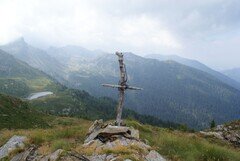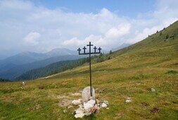 Itinerario: Il punto di partenza per l'escursione è il Ponte di Conseria 1460 metri s.l.m. Da Trento si va in Valsugana verso il paese di Strigno, Scurelle si seguono le indicazioni per il Rifugio Crucolo, si prosegue verso il Rifugio Carlettini, si continua fino al punto di pedaggio si paga 3,50 euro e si arriva al parcheggio Ponte Conseria. Da qui si prende la strada forestale per Malga Conseria Passo Cinque Croci che dopo circa 15 minuti diventa sentiero boschivo. In circa 45 minuti si arriva alla Malga Conseria 1820 metri s.l.m. Arrivati alla malga si prosegue sul sentiero sat 326 e in circa 30 minuti si arriva al Passo Cinque Croci 2018 metri s.l.m. passando davanti ad un monumento che ricorda i soldati caduti durante la Grande Guerra 1915 1918. Dal Passo si prosegue sul sat 326 direzione Forcella Magna, il sentiero gira attorno la Cima Socede, non c'è un sentiero segnato per la salita alla cima, lungo il sat 326 si stacca un sentiero sulla nostra dx (circa 15 20 minuti dal Passo) e su un tratto del sentiero pianeggiante con fondo di terriccio e sassi bianchi, di fronte si a un dosso di sasso scuro con alcuni pini. ( se si guarda alle spalle è più facile notarlo) Dal bivio per la salita alla Cima Socede 2173 metri s.l.m. ci si mette circa 20 minuti arrivati sulla cima si trovano dei resti delle trincee della prima guerra. La discesa della cima è lo stesso percorso della salita che ci riposta sul sat 326 che lo si abbandona dopo circa 10 15 minuti per una deviazione sulla dx ben visibile che porta ai Laghi dei Lasteati. Si prosegue su sentiero non ufficiale ma ben evidente passando per i due laghi per un primo tratto lungo prato per poi diventare boschivo, il sentiero si collega con il sentiero sat che porta al monumento in ricordo ai caduti di Guerra. Da qui si prosegue lungo il sentiero dell'andata passando dalla Malga Conseria fino al parcheggio del Ponte Conseria Difficoltà: E Escursionistica Tempo di percorrenza: 5 ore circa TRACCIA GPS PASSO CINQUE CROCI DOWNLOAD